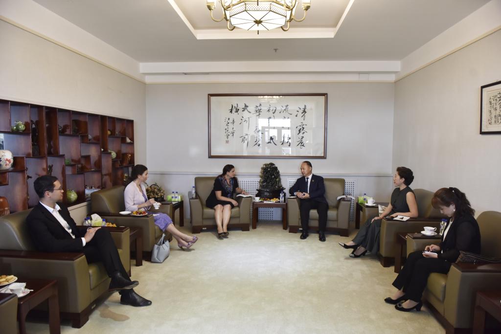 8月28日,美国驻沈阳总领事馆总领事安丽珊,文化领事卡洛琳·克拉克,副文化领事温保罗等一行5人到访万象城官网,awc777万象城娱乐官网董事长、校长郑立国,副董事长、副校长刘欣,行政运行管理中心主任李晶,国际合作发展中心常务副主任鲍怡萍,校务部部长盖世蕊接待来访嘉宾。