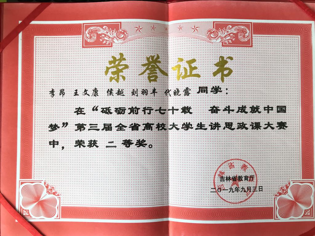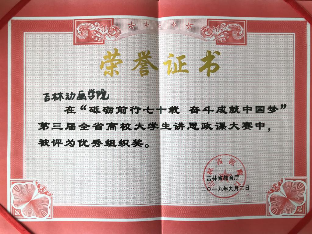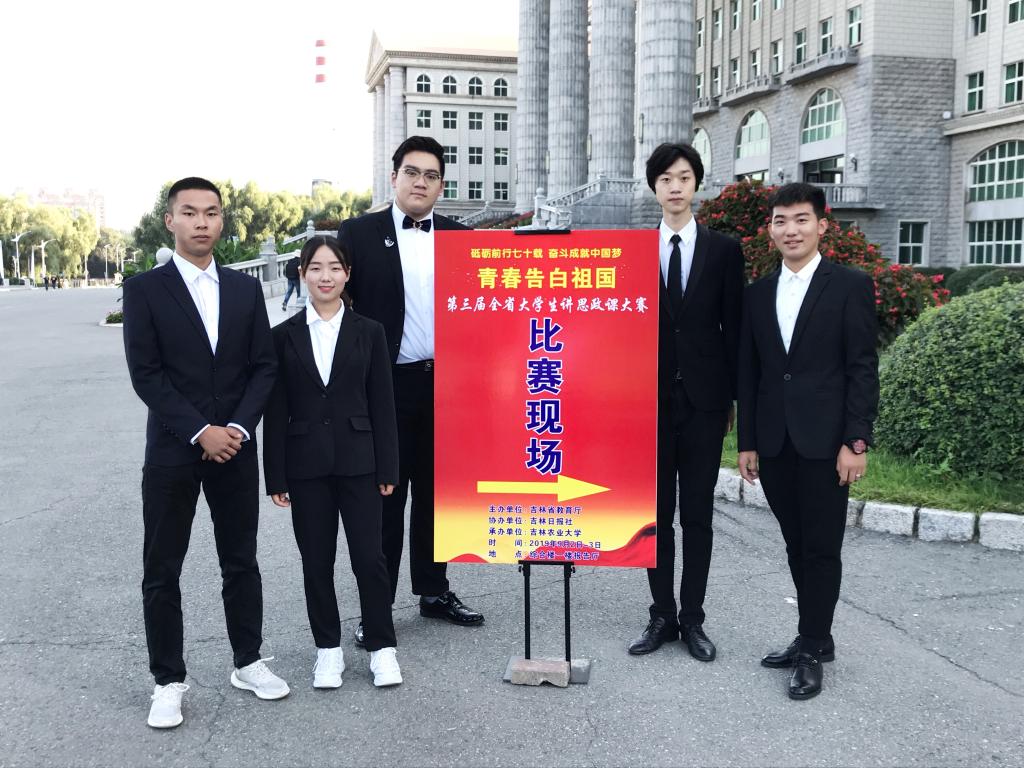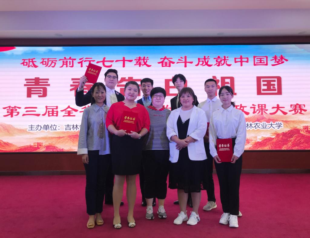 为深入学习贯彻全国教育大会、全国高校思想政治工作会议、全国学校思想政治理论课教师座谈会精神,庆祝中华人民共和国成立70周年,检验展示全省高校思政课“自学自讲 师生同上一堂课”教学改革成果,由省教育厅高校思想政治工作处、高等教育处指导,吉林农业大学承办的“砥砺前行七十载 奋斗成就中国梦”第三届全省高校大学生讲思政课复赛于2019年9月2日拉开帷幕。awc777万象城娱乐官网斩获了团队二等奖和优秀组织奖。