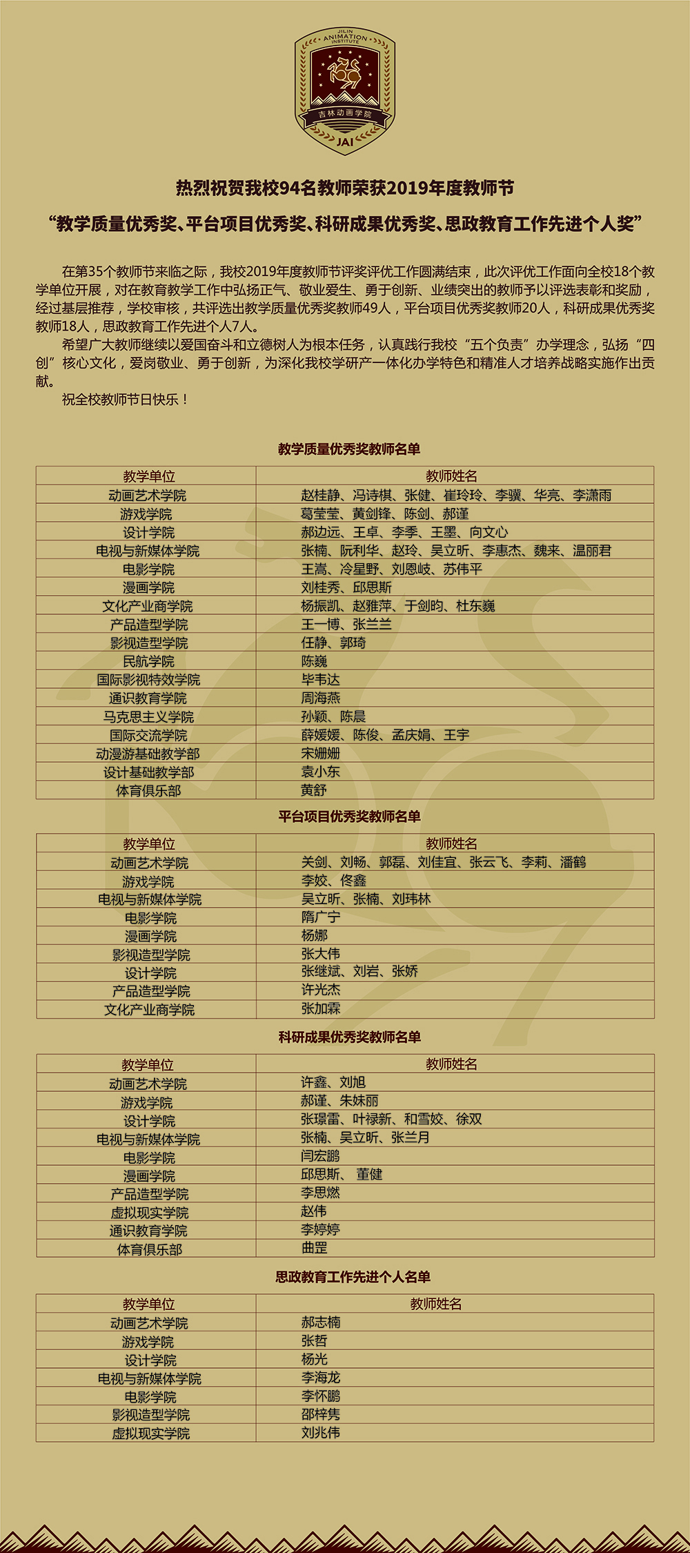 【表彰奖励】awc777万象城娱乐官网关于2019年度教师节教师表彰奖励的决定