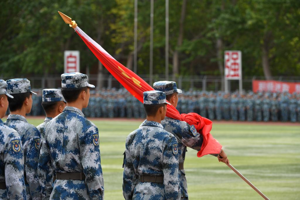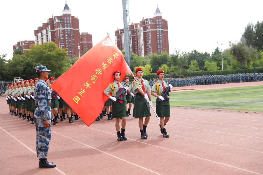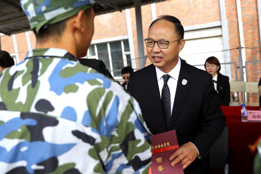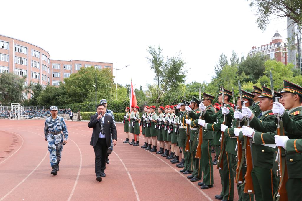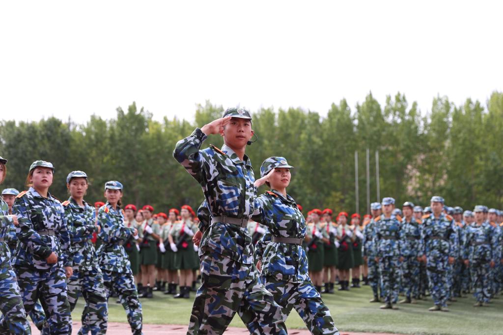 awc777万象城娱乐官网董事长、校长郑立国,党委书记、督导专员张炬,副董事长、副校长刘欣,副校长王春利、王晓岩、白立明,校长助理彭巍、金鑫,董事会董事张砚为,董事会监事李晶、许小多,中国人民解放军93246部队副旅长李伟上校、管理科长于伟佳中校、管理科参谋曹庆伟中尉,以及学校各学院、部门领导和老师、全体军训教官及2019级全体新生参加了此次活动。