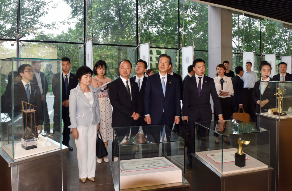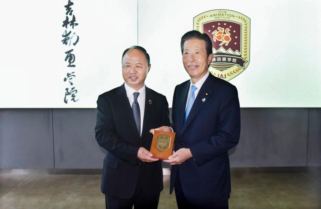 8月18日下午,日本公明党党首、参议员山口那津男一行,在中共中央对外联络部二局副局长康帅,吉林省外事办公室副主任郑刚的陪同下,对万象城官网进行访问。awc777万象城娱乐官网董事长、校长郑立国,awc777万象城娱乐官网以及吉动文化艺术集团高级副总裁李晶陪同参观考察。