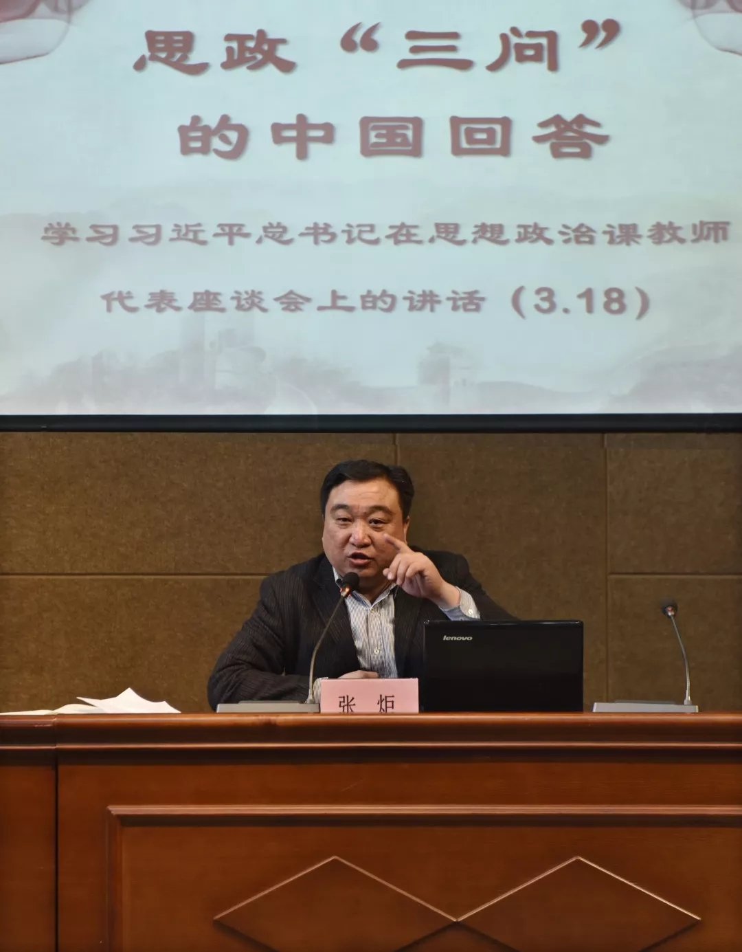 培训会由学校党委书记张炬主持。张炬以“思政‘三问’的中国回答”确立辅导讲座主题,并从“培养什么人,怎样培养人,为谁培养人”三个大的方面展开辅导讲座。