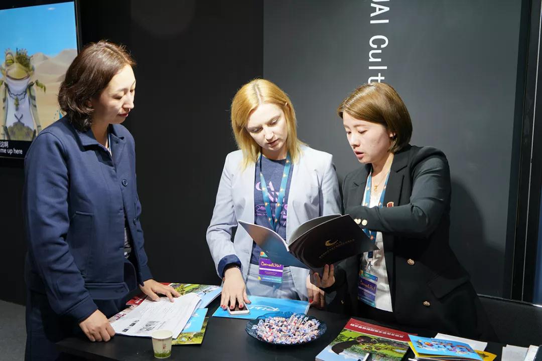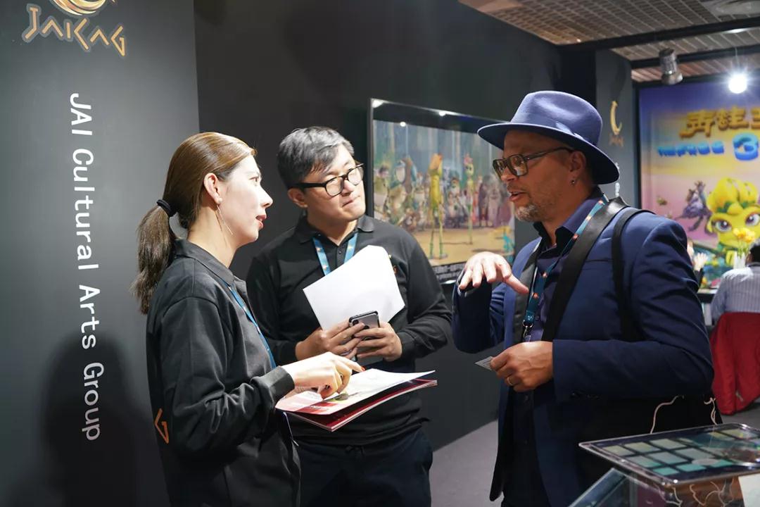展会期间,吉动文化艺术集团的展位上迎来了来自法国、加拿大、俄罗斯、芬兰、美国、韩国、爱尔兰、比利时、意大利、英国等国家及地区的展商代表,双方就吉动文化艺术集团原创IP的全球推广发行和旗下影视类产品的联合制作进行了积极的交流探讨。