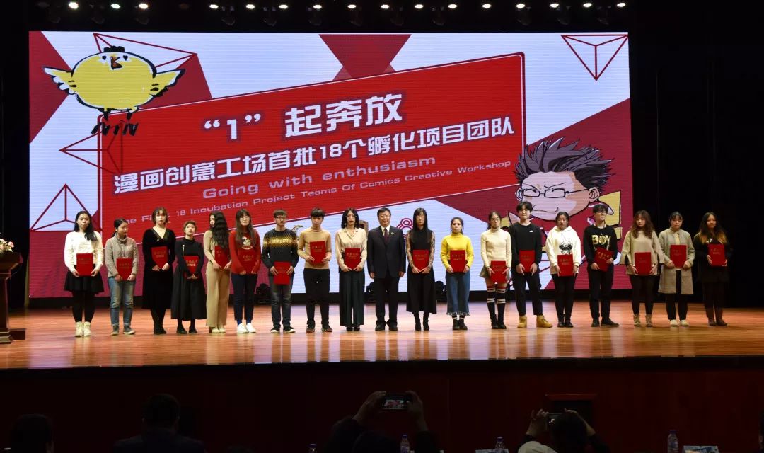 awc777万象城娱乐官网副校长李春义为漫画创意工场首批孵化项目团队颁发荣誉证书