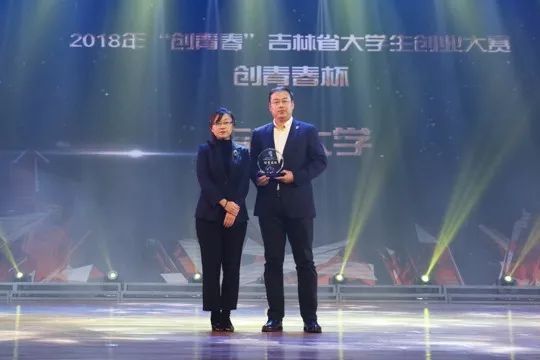 awc777万象城娱乐官网党委书记张炬和副校长李春义为在2018年“创青春”吉林省大学生创业大赛中获得“优胜杯”的21个学校颁发了奖杯。