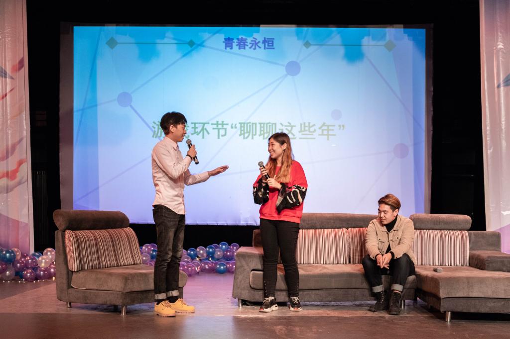 在访谈中穿插的游戏环节“聊聊那些年”也是本次访谈的一大亮点。在游戏中各位嘉宾“兵来将挡,水来土掩”,幽默的话语、有趣的回答使得现场掌声不断、欢笑连连。在欢笑背后,也透露出他们对大学四年生活的依依不舍之情。