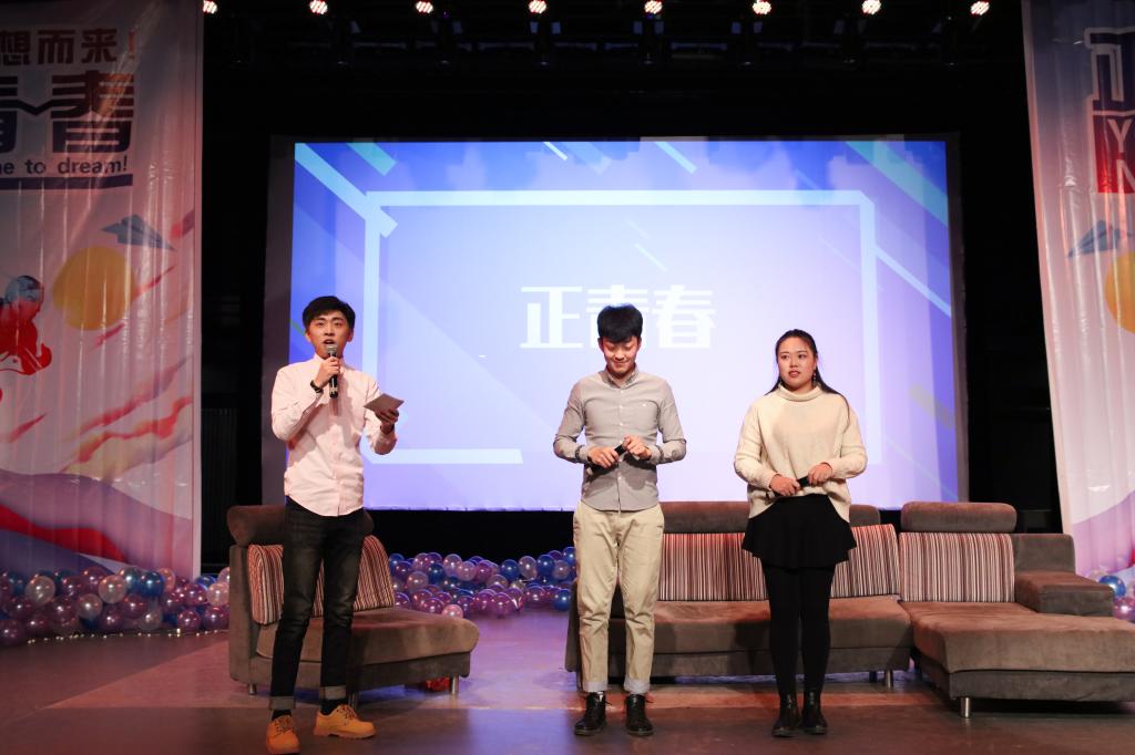 第三组是学生干部代表。他们是游戏学院15级二维游戏美术原创第一工作室、第十五届校团委学生书记曹振强、电视与新媒体学院15级广播电视编导、第十三届电视与新媒体学院团委学生会书记许鑫伟、漫画学院15级欧美漫画项目创作工作室、第四届漫画学院团委学生会主席刘天琦。三位学长热情铿锵,幽默风趣,现场气氛迅速被点燃。他们是学生会干部,亦是普通的大学生,在工作之余与大家无异,而在工作时,他们表示:任何的职务、头衔都是一时的,只有自己是一辈子的,在面对工作时,无论职位大小,都要尽心尽力完成,服务同学,锻炼自我。随后,他们以“吉动学子吉动魂,吉动之魂不忘恩。青春无量,恩情不忘。”寄予了他们对母校最虔诚眷恋。
