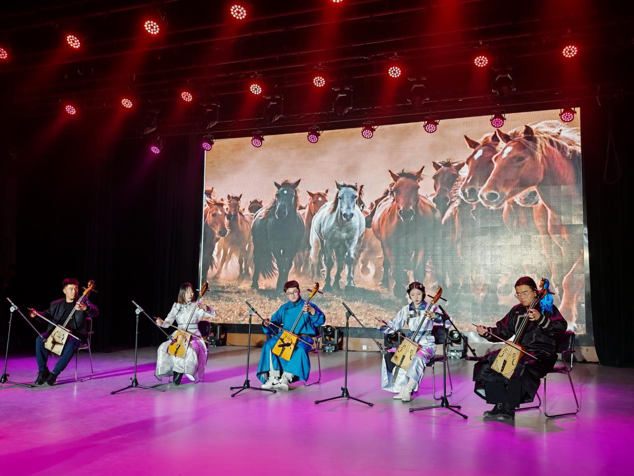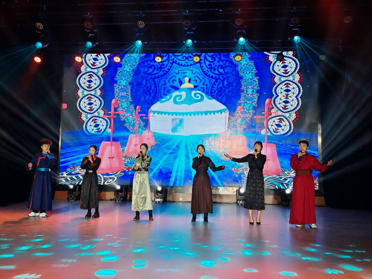 开学典礼结束后,马克思主义学院为新生们带来精彩的晚会表演。演出节目内容丰富,弹唱、舞蹈、话剧等节目异彩纷呈。其中,一曲深沉醇厚、节奏感强烈的马头琴演奏是希望同学们如同一匹匹骏马般充满激情;一首首旋律轻松愉悦的歌曲是希望同学们时刻保持轻松心态;一段段以轻快舞步呈现的舞蹈是希望同学们青春活力永驻;一场话剧是希望青年学子胸怀爱国之情,坚定为民族振兴而奋斗的决心;喜逢祖国75周年华诞,全员参与的《我爱你中国》大合唱将所有人的心连接在一起,“我爱你中国,心爱的母亲,我为你流泪也为你自豪”等歌词一一传唱,深情而真挚,让人动容,激发起每一个人的爱国热情。
