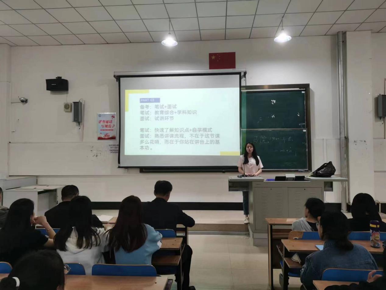 四名已经考上教师编的优秀毕业生向同学们介绍可供参加的考试类型、选岗的学问、考试内容和资源,建议学弟学妹们尽可能多地参加考试,能考都去考,以提高录取率,同时建议同学们了解不同地区、单位和岗位竞争难度,以获得更大竞争优势。
