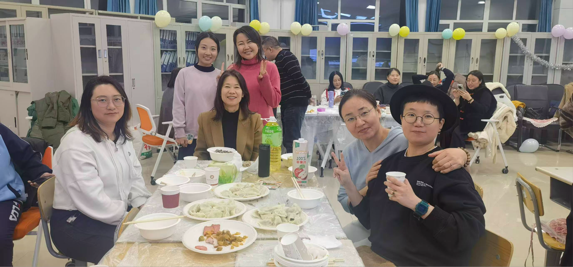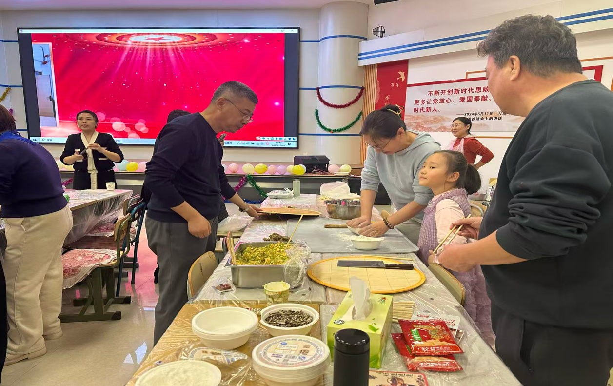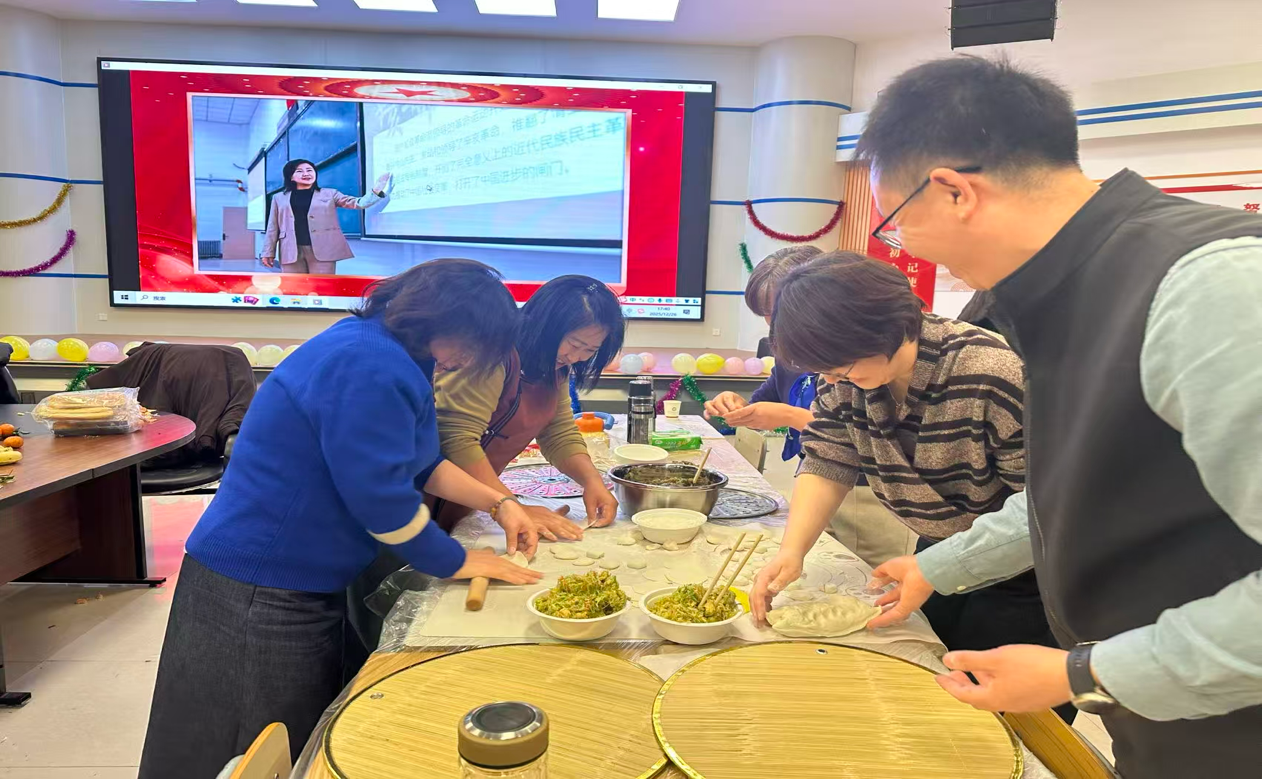 随后,包饺子环节将活动氛围推向高潮,为本次联欢画上圆满句号。大家围坐一起,和面、擀皮、包馅,一双双巧手将团圆的期盼和新年的祝福包进饺子里。大家边包边聊,从工作日常谈到生活趣事,教室中飘着饺子馅的香气,也满溢着“家”的温馨。