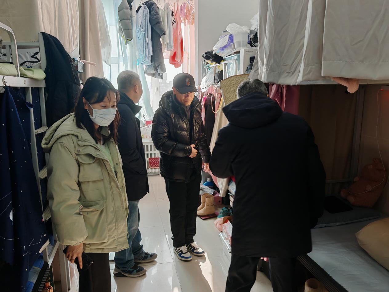 走访过程中,学院领导们仔细查看了宿舍的设施环境,与同学们亲切交谈。孙友书记重点强调了宿舍用电安全及假期将至的防盗问题,反复叮嘱同学们要注意冬季防火防电,严禁使用违规电器,守护宿舍安全。学院党总支书记孙友暖心地关心同学们的课余生活,嘱咐大家要保持良好的作息习惯,营造积极向上的宿舍氛围。