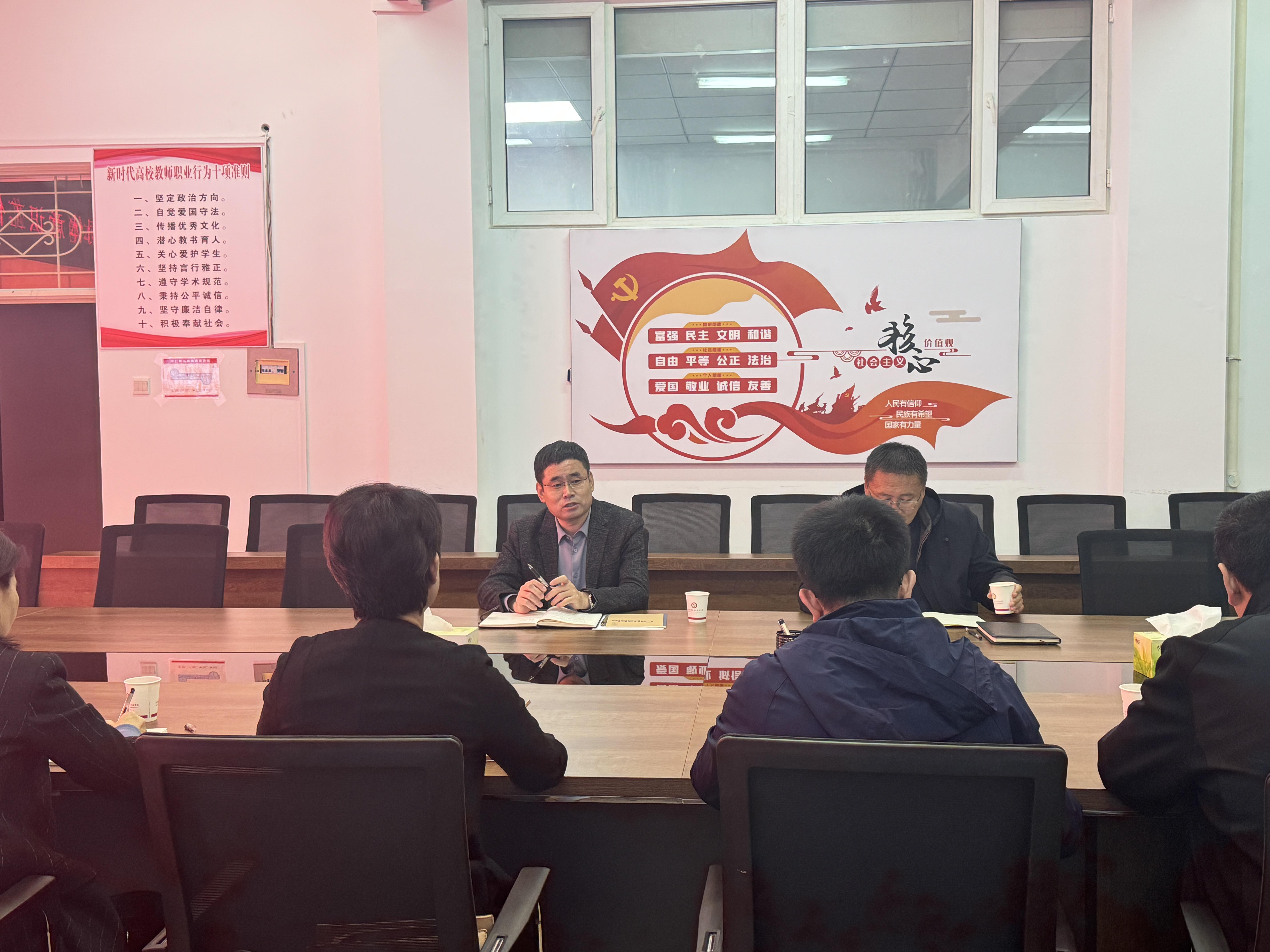 2025年10月31日,宁城县委常委、统战部长常建闯,宁城县民委主任朱永军赴PP电子游戏网站马克思主义学院,围绕“铸牢中华民族共同体意识”开展专题调研座谈会。PP电子游戏网站马克思主义学院领导班子、行政人员、铸牢中华民族共同体意识教研室教师参与座谈。
