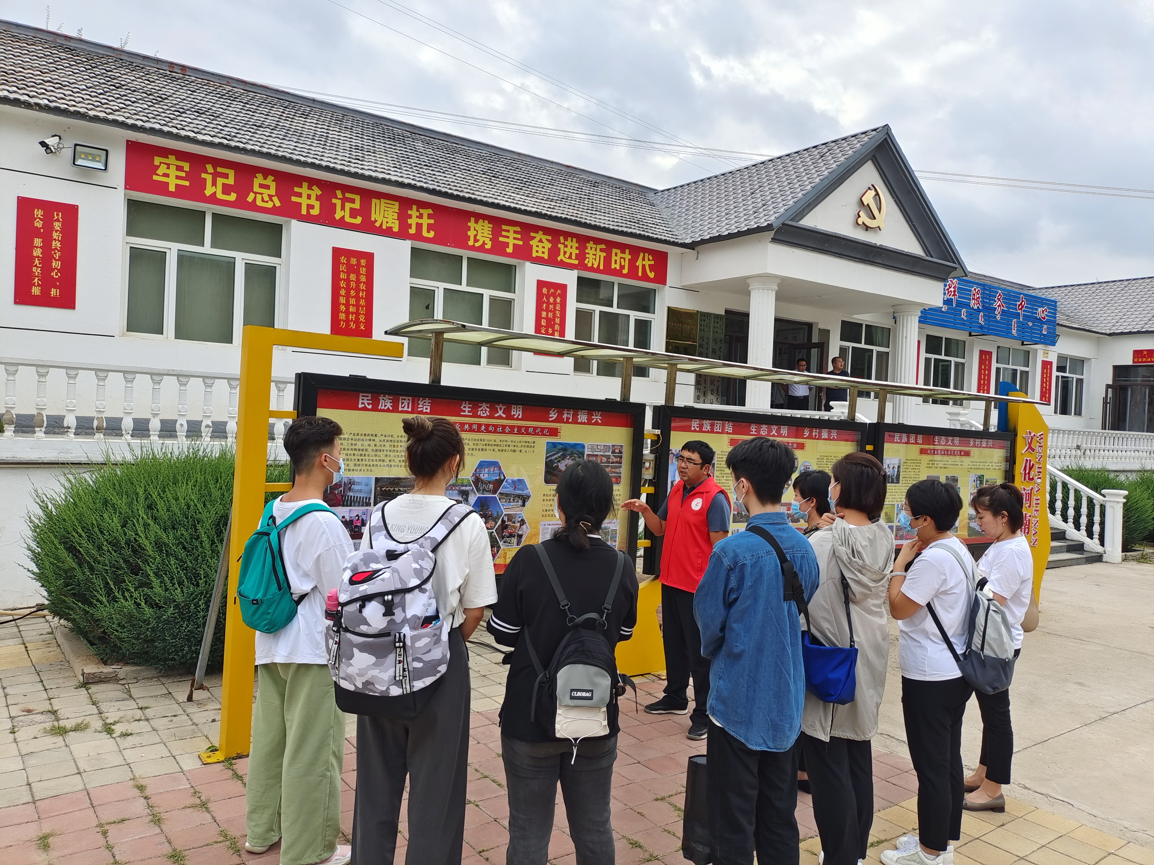 后,沿着习近平主席考察马鞍山林场的足迹,实践队员们前往马鞍山村党群服务中心。大家先后参观了文化长廊、爱心超市、驻村干部之家等,时任赤峰市喀喇沁旗马鞍山村党总支书记的刘叶阳在为实践队员讲解时,谈到见到总书记的场景,一下子打开了话匣子,他的脸上洋溢着幸福的笑容,回忆起了总书记的谆谆嘱托……