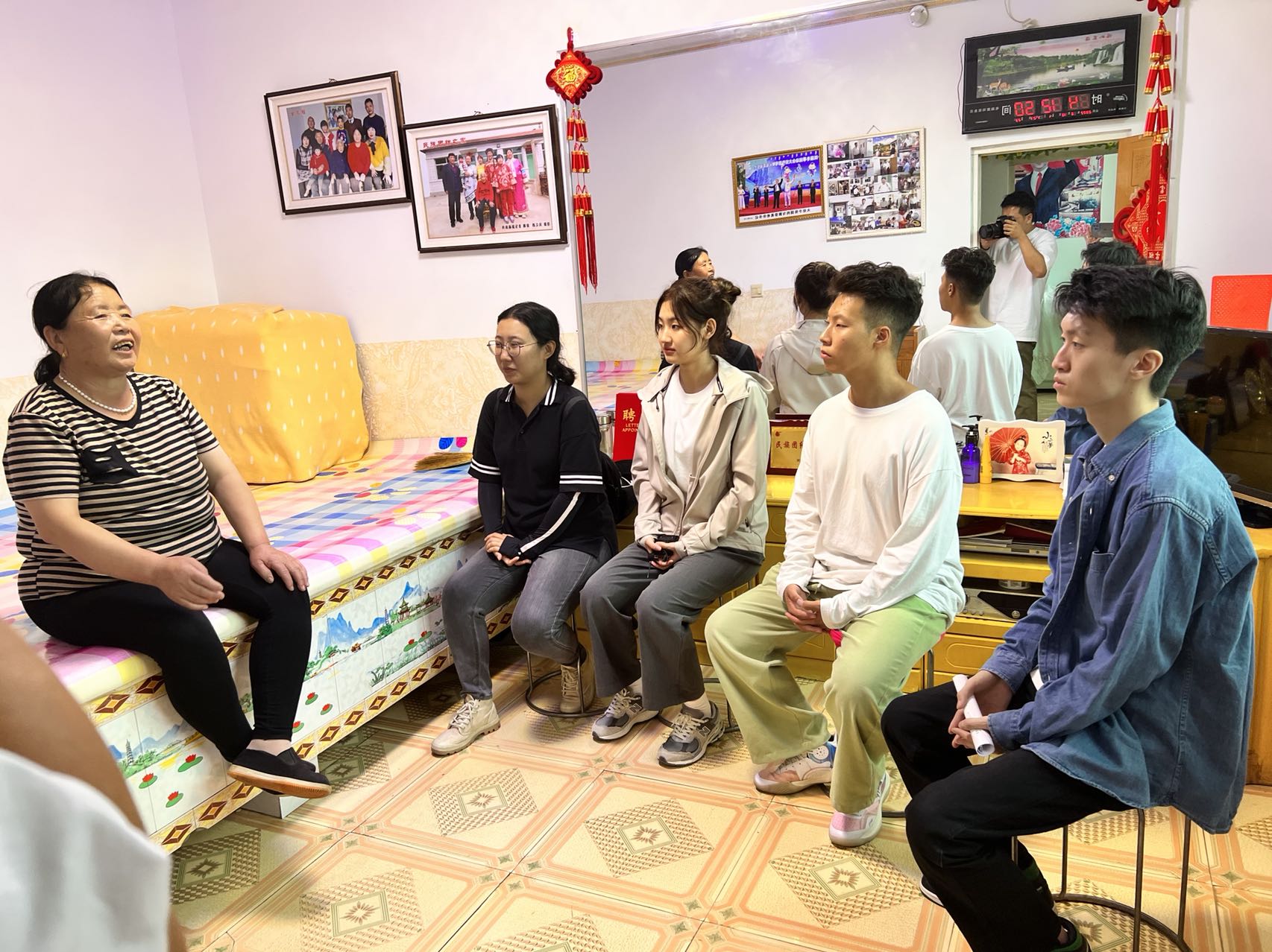 最后,大家来到了四世同堂的多民族之家村民张国利家。老师和学生们都被两位老人的热情周到所感动,并跟着他们的回忆,感受当时村民们的激动与喜悦。张大爷的讲述很细致,谈到了总书记十分关心他们的生活细节,问张大爷锅炉什么时候买的?多少钱买的?一年烧多少煤啊?煤多少钱?都烧到什么温度啊?朴朴实实的话语,情真意切地情感,让大家深深体会到了领袖对人民的深切牵挂,感悟到了领袖为国为民的博大情怀。