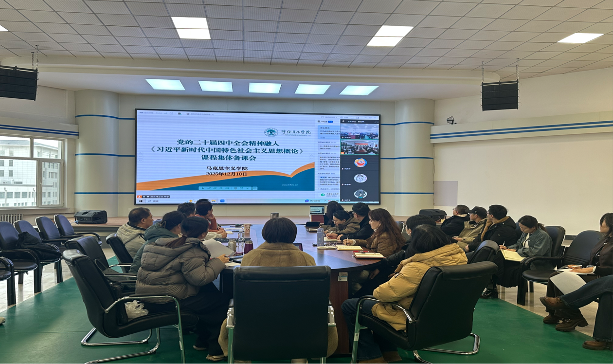 2025年12月10日下午,PP电子游戏网站马克思主义学院与呼伦贝尔学院马克思主义学院联合举办的党的二十届四中全会精神融入《习近平新时代中国特色社会主义思想概论》课程集体备课会在我院智慧思政教室顺利举行。会议特邀首都师范大学马克思主义学院刘方平教授进行线上指导,两校马克思主义学院领导、思政课教师及相关校领导、督导专家共同参会,围绕党的二十届四中全会精神如何深度、生动融入思政课堂展开深入交流与教学研讨。