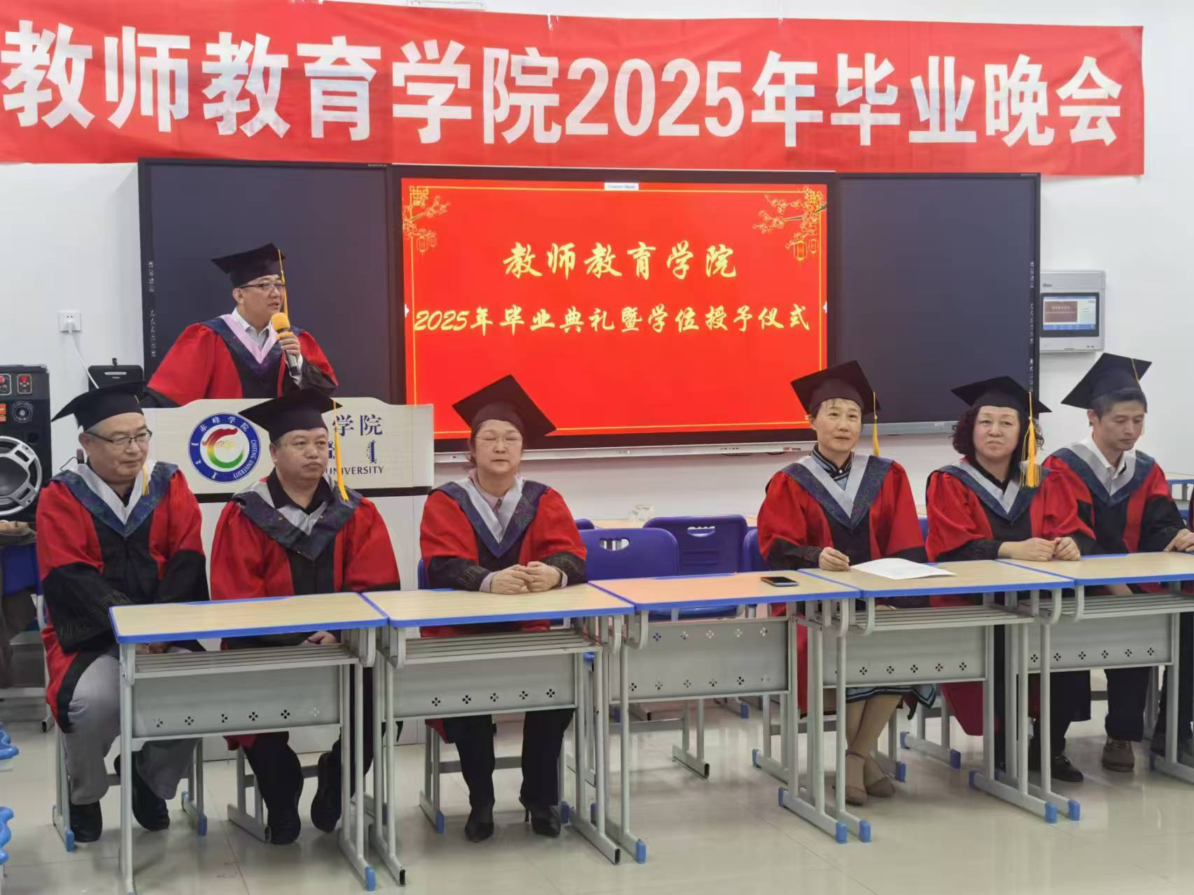 晚会伊始,教师教育学院党总支书记宣读毕业生名单,并向圆满完成学业的全体毕业生表示最热烈的祝贺。院长杨晓坡发表毕业讲话,他深情回顾了同学们在校期间勤奋学习、勇于实践的成长历程。他勉励毕业生们要胸怀家国,志存高远;要终身学习,勇于创新;要脚踏实地,坚韧不拔;要心怀感恩,回馈社会,将母校的教诲和期望化作前行的动力,在人生的广阔舞台上绽放更加绚丽的光彩。