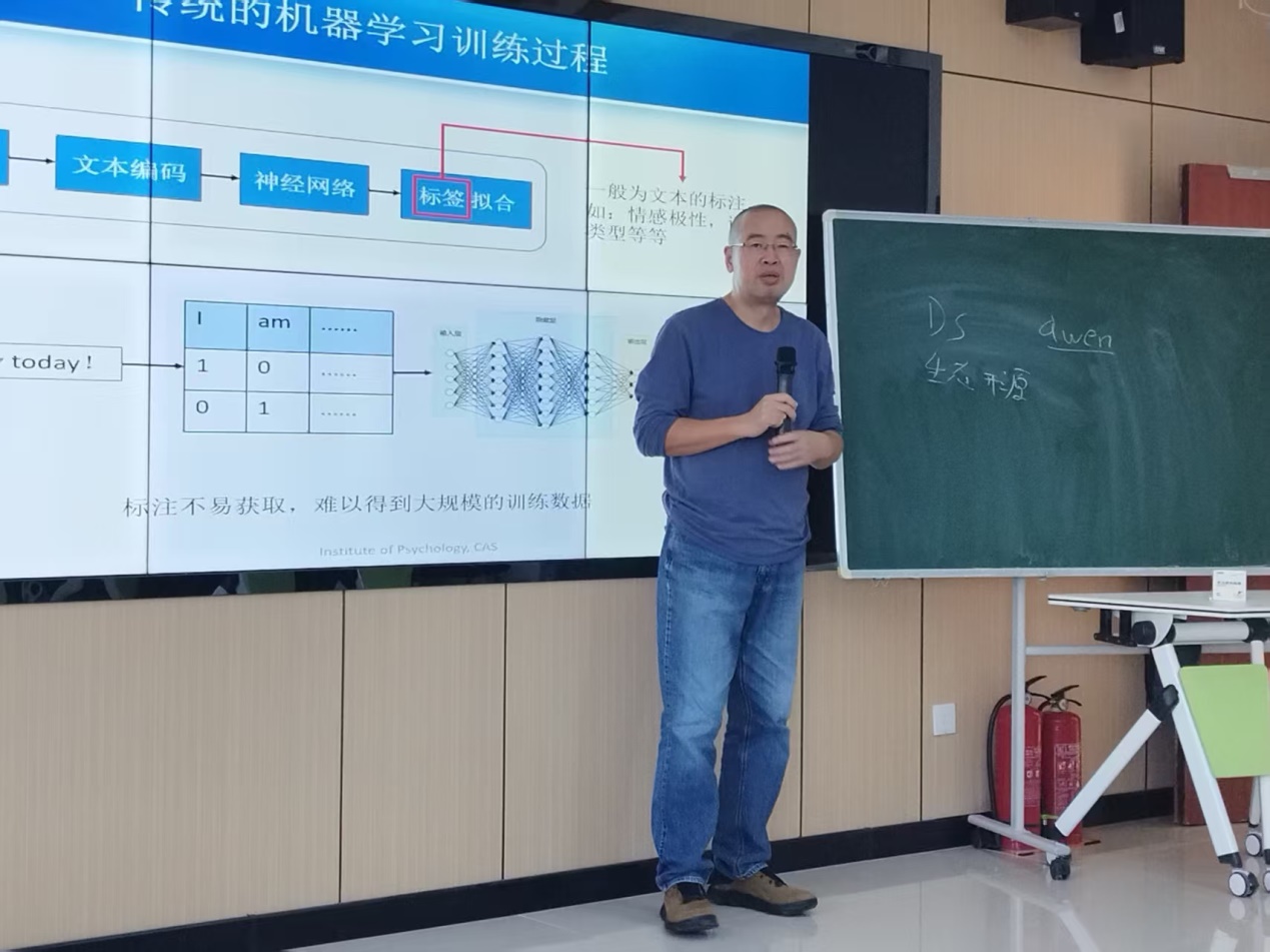 朱廷劭研究员从大语言模型的理论基础、心理特征的维度构建与自动化识别、数据驱动的关系识别等方面进行了系统阐述,并结合实际案例展示了模型在情感分析、人格测评以及个性化干预等场景的应用效果。此次活动不仅让与会者对前沿 AI 技术有了直观认识,也为后续开展“AI+心理学”交叉研究奠定了基础。