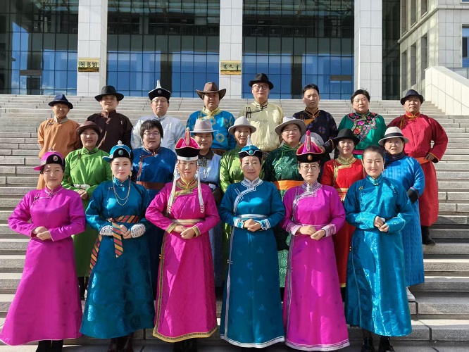 在9月24日学校举办的“红歌颂中华 奋进新时代”主题教职工合唱比赛中,蒙古学学院教职工合唱团以出色的表现荣获三等奖。比赛中,我院教职工精神饱满,情感真挚,先后演绎了《走向复兴》与蒙古语版《我和我的祖国》两首经典曲目。铿锵有力的《走向复兴》唱出了对国家未来的坚定信心,而深情悠扬的蒙古语《我和我的祖国》则以其独特的民族韵味,表达了对伟大祖国的深厚情感,赢得了现场观众的共鸣与掌声。