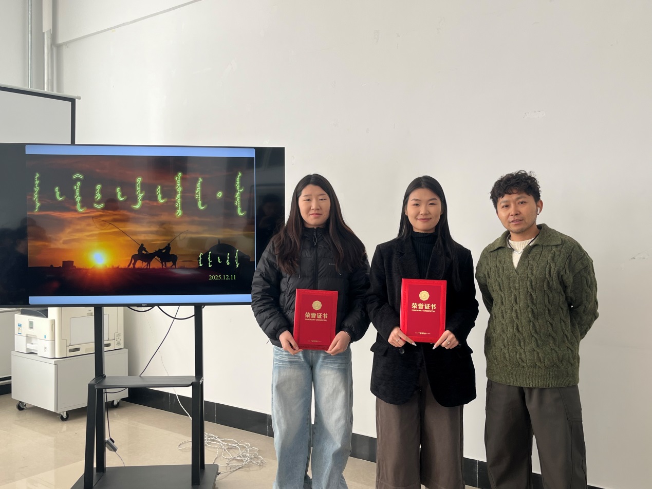 为进一步提高研究生师范技能和实践能力,12月11日,蒙古学学院在研究生活动室举办了第三届“乞颜智慧杯”研究生三笔字比赛。比赛中同学们充分展示了三笔字书写功底,评委们本着公平公正的原则进行评选,最终2025级研究生丽瑛获得一等奖;2024级研究生王花蕾、乌日寒获得二等奖;2024级研究生萨如拉、敖敏、2025级研究生倪其其格获得三等奖。