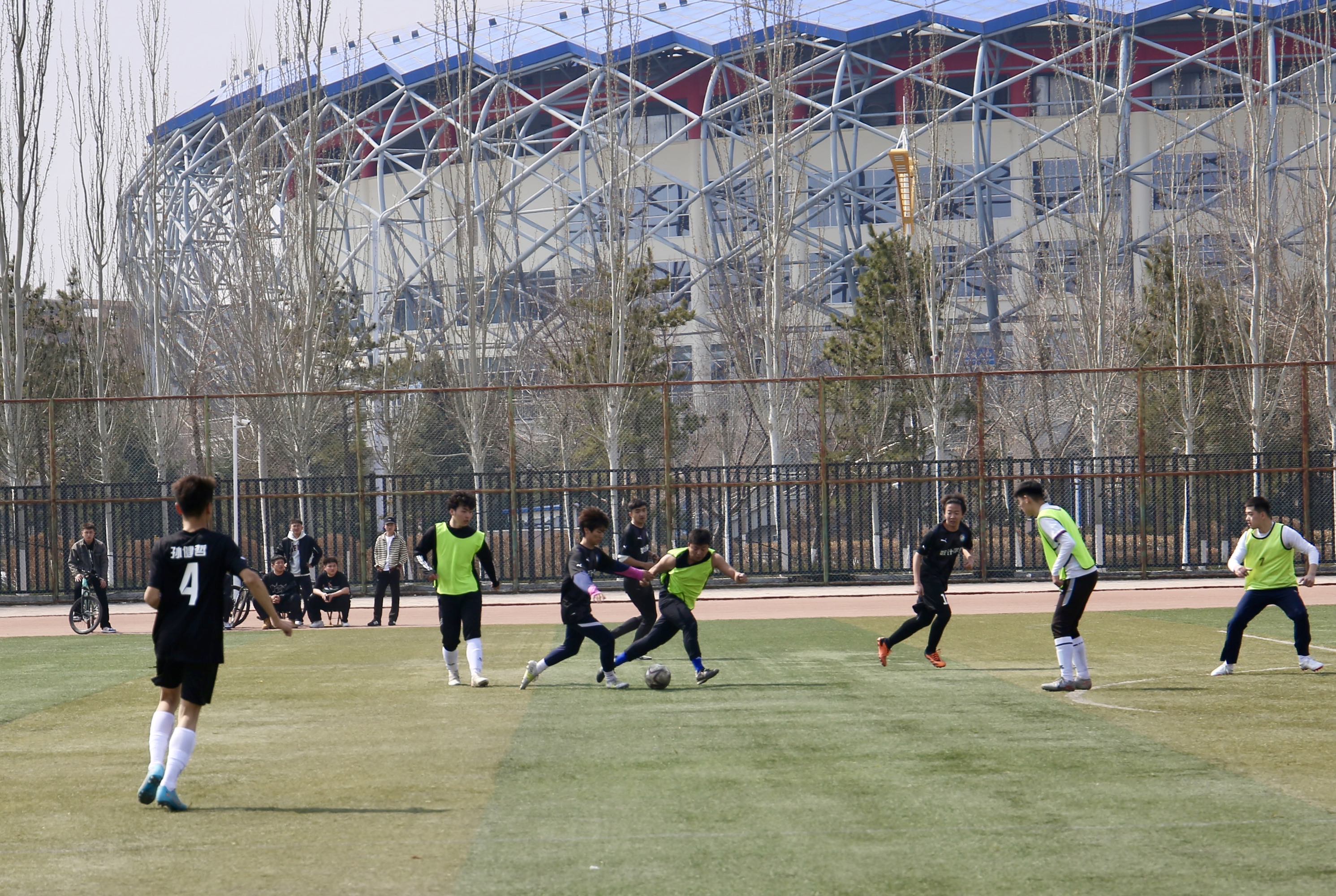 他们奔跑在绿茵场上,传球、射门、防守,动作娴熟而敏捷。经过音乐学院球员们的共同努力开了一个好彩头,最终以5:2的成绩赢得了本次比赛。