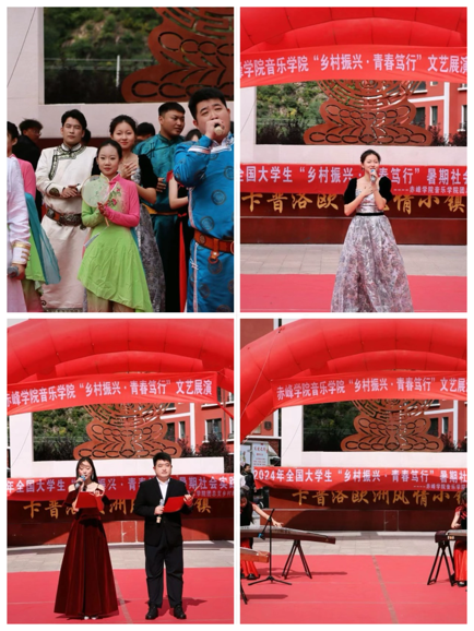 喀喇沁旗的舞台上,音乐学院学子活力满满。他们或引吭高歌,歌声嘹亮动人;或翩翩起舞,舞姿优美轻盈。精彩的节目引得观众阵阵喝彩,他们用热情与才华,为喀喇沁旗增添了一抹绚丽的艺术色彩。