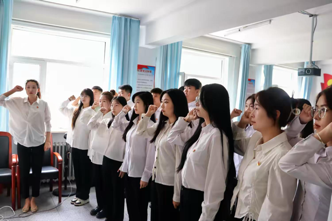 仪式第四项:预备党员代表肖楠表示,在以后的工作、生活、学习中,将严格要求自己,注意发挥党员的先锋模范作用,冲锋在前,吃苦在先,不忘初心、牢记使命,立足本职,踔厉奋发,有一份热发一份光,以青春之我创建青春之中国。