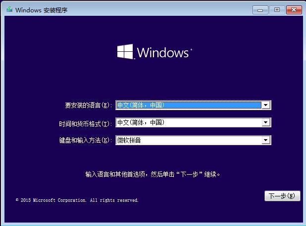 系统有驱动器引导,进入Windows 10的安装界面,选择安装语音,点击下一步。