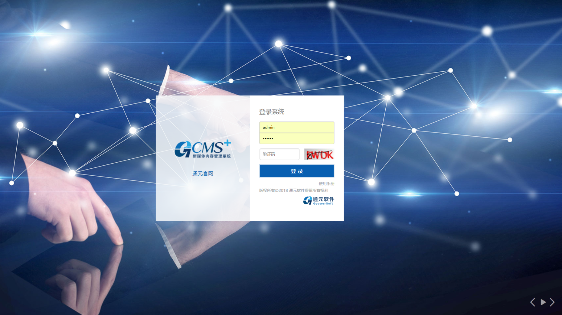 在登录页面输入正确的用户名、密码和验证码,点击【登录】,就可以进入系统的后台。