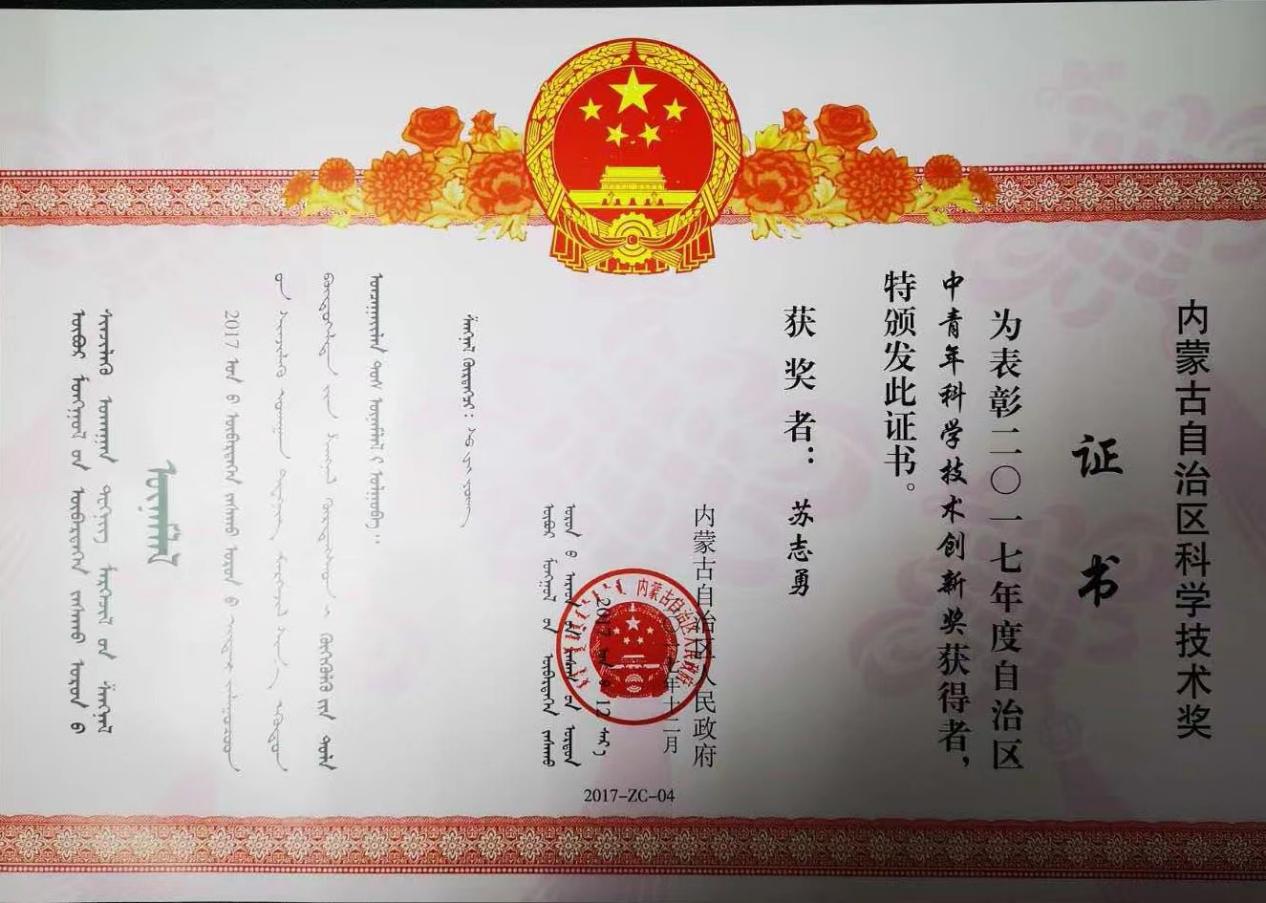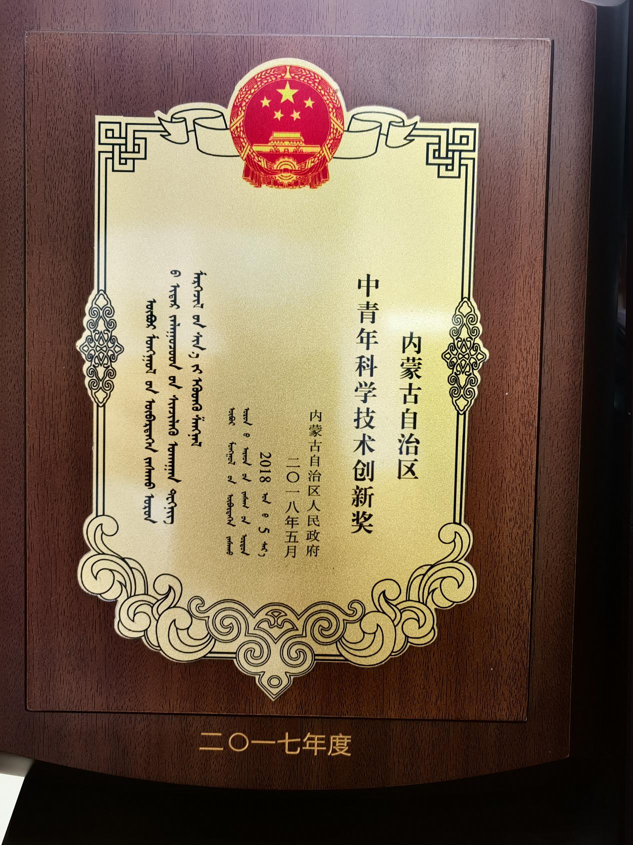 2017年度内蒙古自治区中青年科学技术创新成果奖