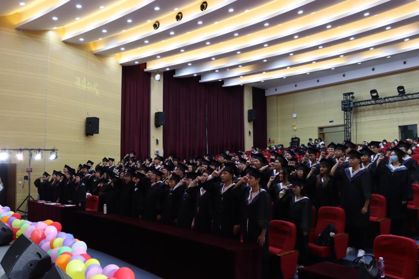 19时整,毕业典礼在庄严的国歌声中开始。