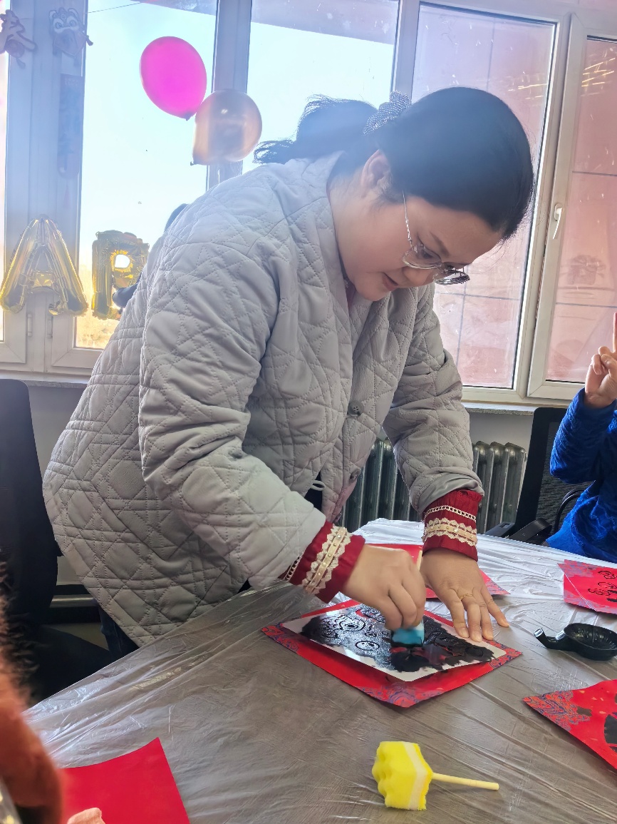 活动现场热闹非凡,墨香四溢。大家围坐桌边,巧手拓印,在笔墨纸砚中感悟着中华优秀传统文化的魅力。另一侧,大家挥毫泼墨,笔走龙蛇,提笔书画着2026年的美好祝愿。随着笔墨飞舞,谈笑间“栩栩如生”、“活灵活现”的“福”字作品呈现于纸上。整个活动充满了欢乐、祥和的新年气息,脸上洋溢着笑容。拓印结束,每人将作品张贴在窗上,将现场布置的温馨而充满活力,处处洋溢着节日的氛围。